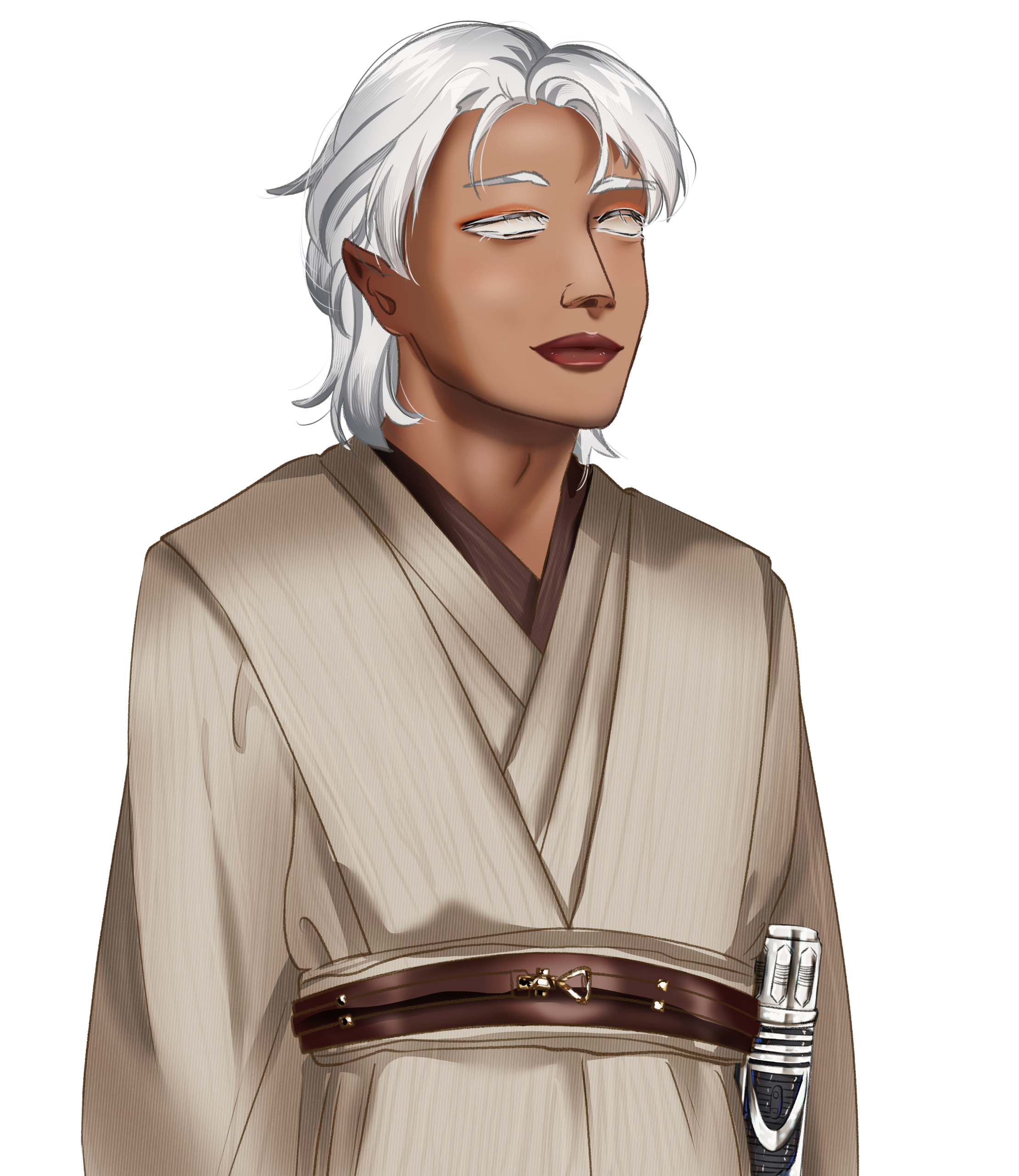 Chosung spent their Padawan years as the apprentice to Jedi Master Limea Kelkess. She was a highly accomplished Jedi Sentinel working as a Shadow. For that reason, she was known to be cold and aloof to her colleagues. Many of Chosung's teachers expressed concern that she took Chosung as they thought his abilities would be best suited as a Consular. Chosung did have fantastic precognition and would have made a great Seer and his weakness in combat wouldn't be an issue if he chose that path. However, Limea saw Chosung's potential in battle and thought he'd be able to reach greatness as a Sentinel.Chosung enjoyed moving around with Limea. Although he was heavily into meditation and studying in his younger years, as a teen, he wanted to go out and see the world. He had gotten used to the blistering heat of alien worlds and the brightness of starships. Limea was very pleased with Chosungs abilities when it came to espionage skills such as mind tricks and diversions. Chosung saw Limea as an older sister figure and the two got along well. Limea was sassy and very unconventional for a Jedi Master in terms of her attitude. She encouraged Chosung to think critically about his surroundings and others.As a Shadow, Limea went on a lot of dangerous missions and of course she took Chosung with her. Chosung had not been out of the Temple much as a Youngling so suddenly being outside all the time was very jarring. He did enjoy getting out of the traditional Jedi robes and wearing civilian attire. Limea encouraged Chosung to take on a different alias wherever they went for added security. Chosung also decided on adopting a more 'human' appearance to further hide his identity. This is when he chose the name 'Chosung'.Chosung was very emotional as a teenager and in those times, Limea would hear him out and meditate with him. She truly believed in his potential and wanted him to achieve great things. As a Shadow, Limea knew a number of Dark Side skills that she taught to Chosung on various missions. Chosung's abilities with mechu-deru and mind tricks stood out and made him great help on missions.